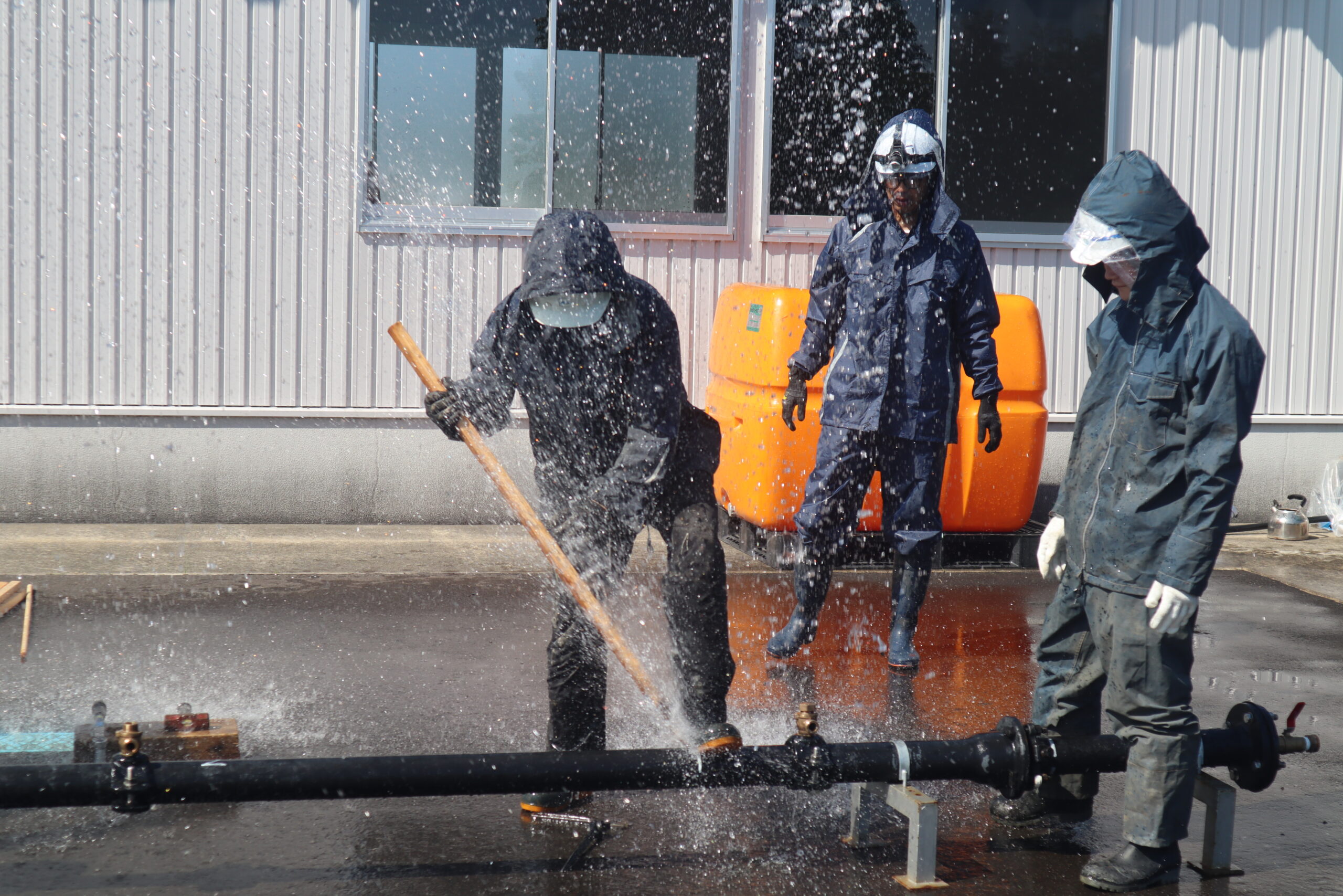 組合7社(9名)が参加し試験同様に水圧をかけ、サドル付き分水栓の穿孔を行いました。