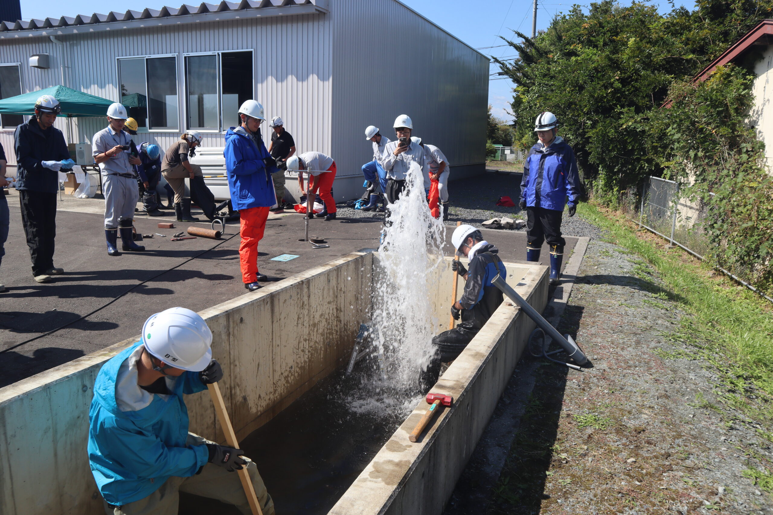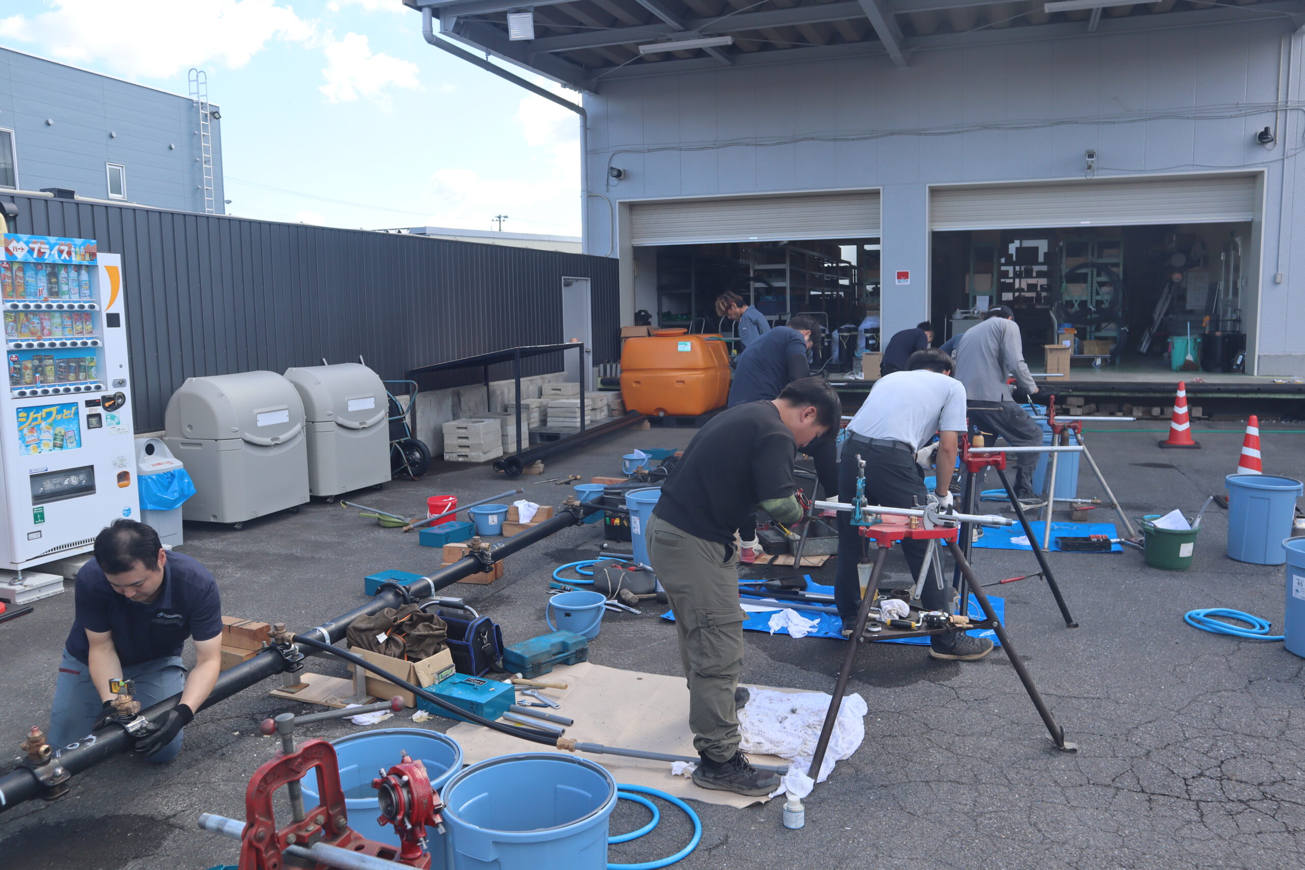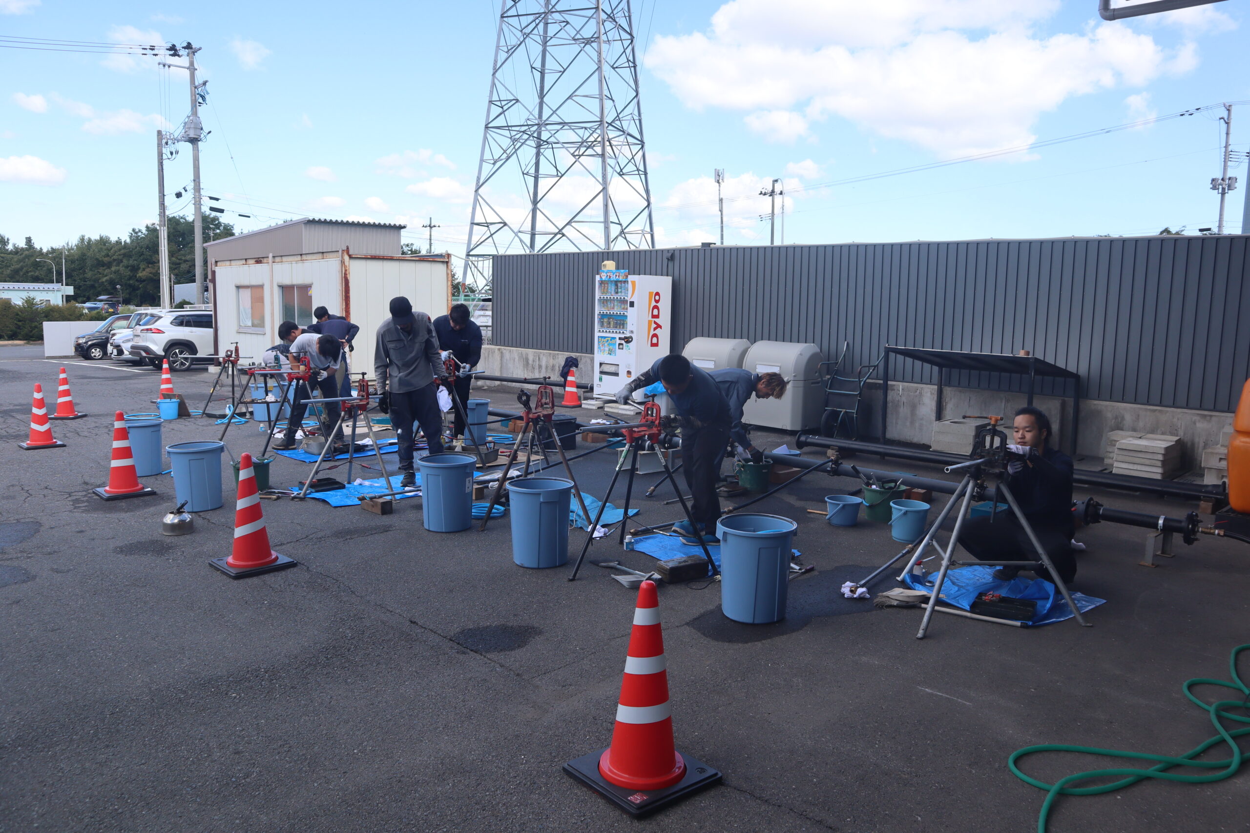 技術委員会企画、令和7年給水装置工事配管技能検定会(八戸会場)の事前講習会を協会駐車場内で実施。